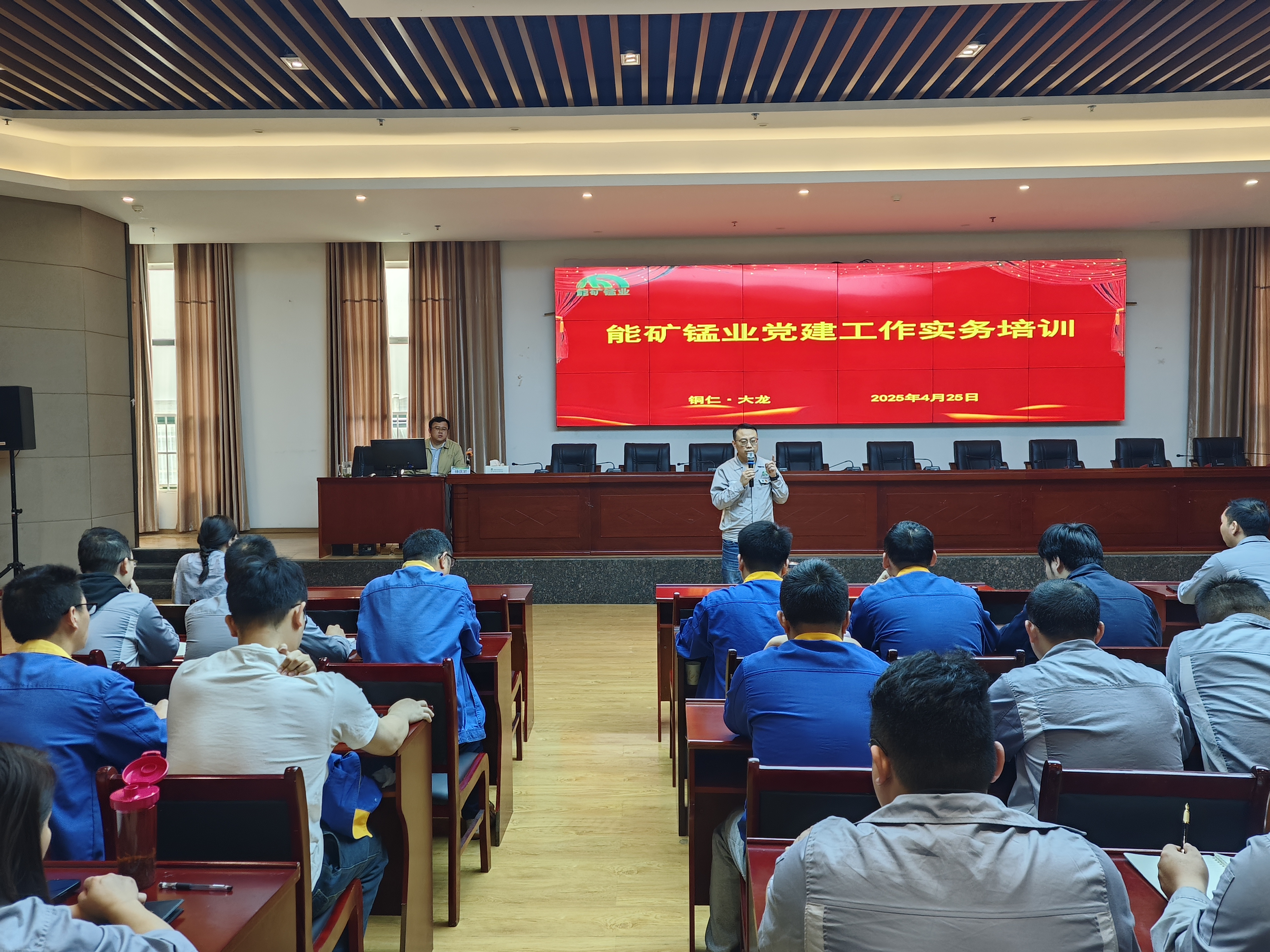 本網訊 4月25日,能礦錳業開展黨建工作實務培訓,邀請省國資委黨建庫專家徐慶巖“國有企業黨建工作實操”培訓,公司黨委委員、副總經理周圍主持。