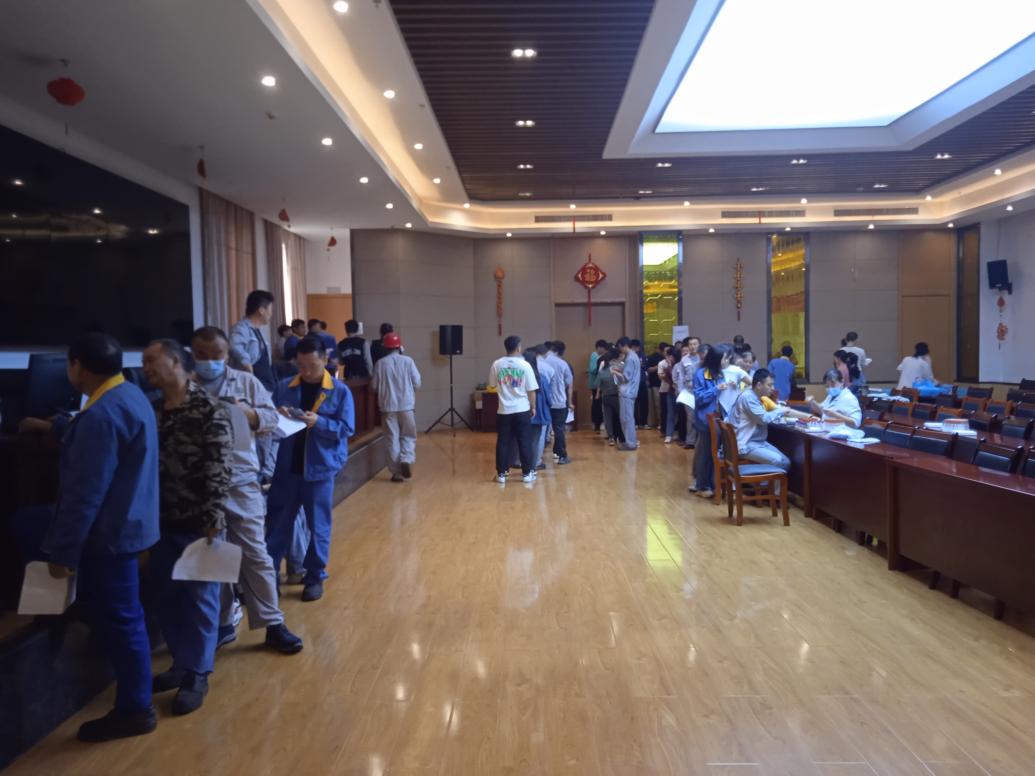 此次能礦錳業職工健康體檢由銅仁華夏醫院負責,5月23日開始,連續4天為生產一線職工進行肺功能、DR高仟伏胸透等10個項目檢查,為非生產一線人員進行血糖、心電圖等7個項目檢查,為38名已婚女工進行乳腺、宮頸“兩癌”篩查體檢。據筆者深度了解,此38名女工為本地20-34歲、本地區域外村鎮與異地移民搬遷安置點已婚婦女,不在銅仁市對玉屏、大龍兩地農村戶口35-64歲婦女進行免費“兩癌”篩查范圍內。
