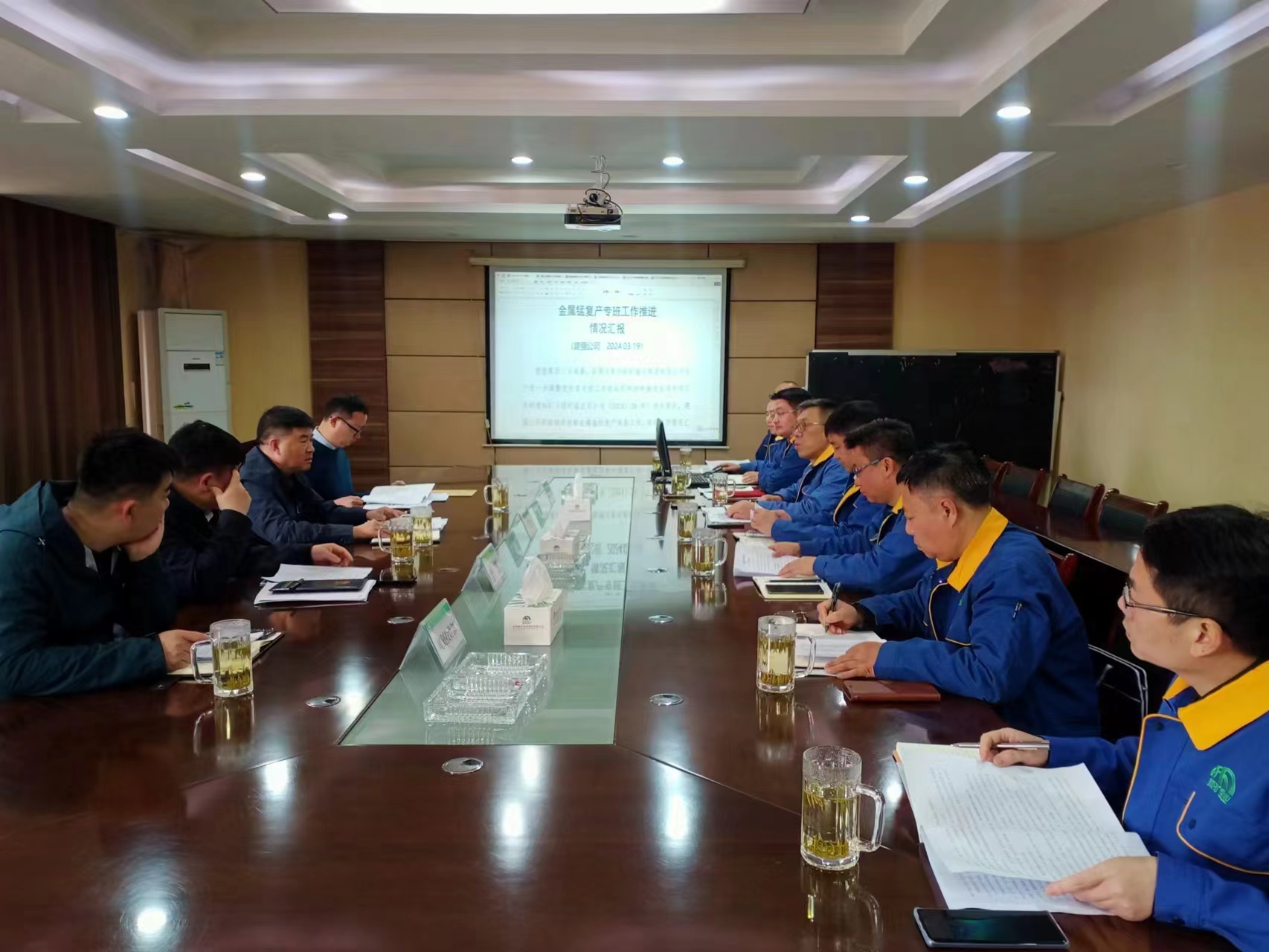 儀式結(jié)束后,集團領導隨后聽取能礦錳業(yè)一季度生產(chǎn)經(jīng)營、工作專班、減虧止損三年行動工作匯報。當天下午,趙震海一行還深入建強錳業(yè)錳渣無害化建設項目現(xiàn)場,深度了解建設項目推進情況。在聽取建強錳業(yè)復產(chǎn)工作匯報后,趙震海指出,自電解金屬錳復產(chǎn)專班以來,前期雖做了大量引戰(zhàn)合作、市場調(diào)研等工作,但推進工作成效不夠明顯。他強調(diào),要堅定戰(zhàn)勝當前市場萎靡、產(chǎn)能規(guī)模小等困難的信心和決心。要系統(tǒng)性做好復工復產(chǎn)成本測算工作,算好經(jīng)濟賬、成本賬。要有長遠發(fā)展的戰(zhàn)略思維,加大力度論證委托承包經(jīng)營可行性,尋找推動公司高質(zhì)量發(fā)展的有效路徑。要緊緊圍繞減虧控虧目標,做好目標任務分解,落實落細季度、月度經(jīng)營指標。要著力推進電解金屬錳生產(chǎn)線復工復產(chǎn),抓好四氧化三錳、堿性產(chǎn)品研發(fā),延伸產(chǎn)業(yè)鏈,不斷豐富產(chǎn)品結(jié)構(gòu),增強企業(yè)核心競爭力。要切實落實“抓對標、強管理、提質(zhì)效”專項工作,提升基礎管理水平。要以改革促發(fā)展,以創(chuàng)新解難題,扎實推進錳渣無害化項目建設。要健全完善班組成本管控機制和全員績效考核機制,組織實施“三定”方案和薪酬體系改革,以改革為抓手,激發(fā)干部員工隊伍活力。要營造科技創(chuàng)新環(huán)境,加強科技人才培養(yǎng),提升創(chuàng)新創(chuàng)業(yè)能力,科技賦能公司高質(zhì)量發(fā)展。