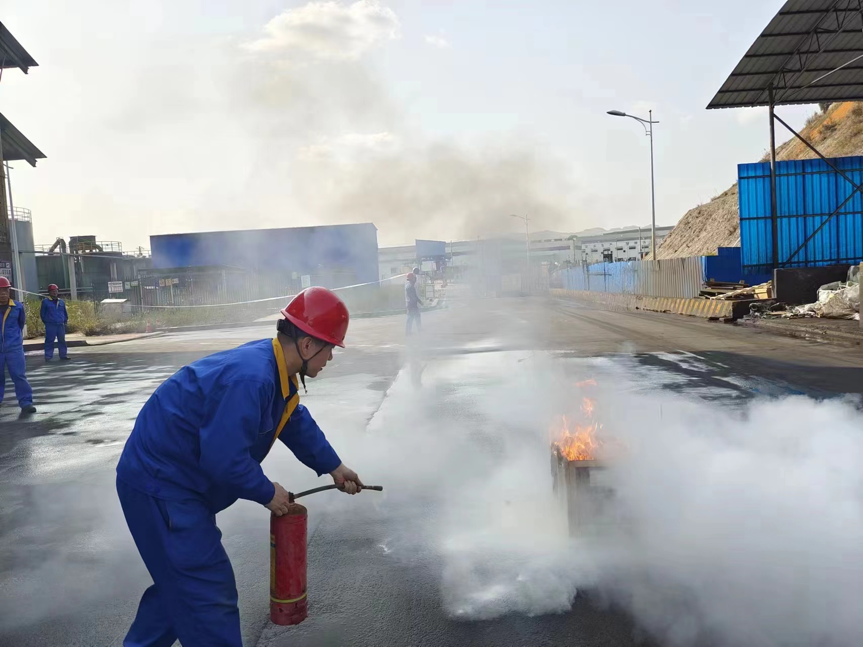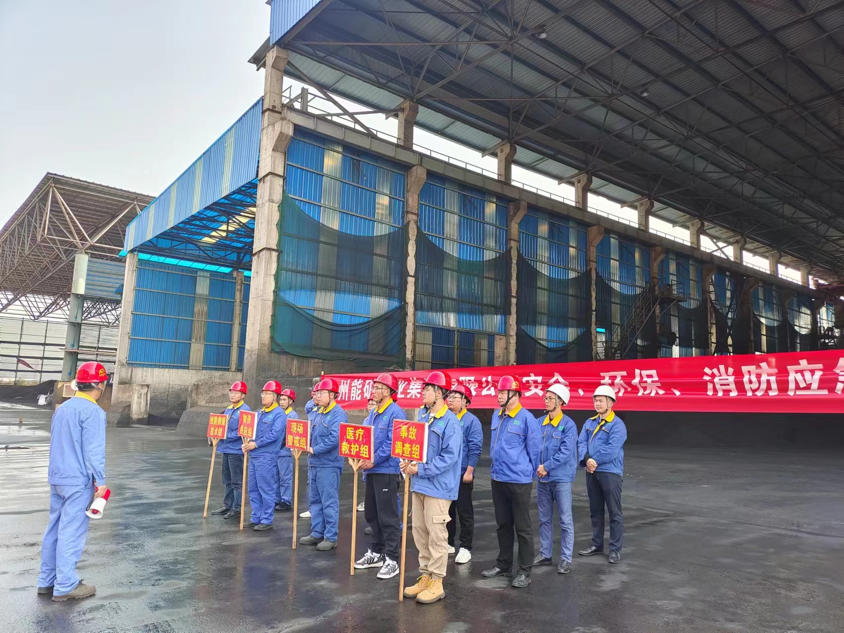 火災事故模擬演練在煤場旁進行。