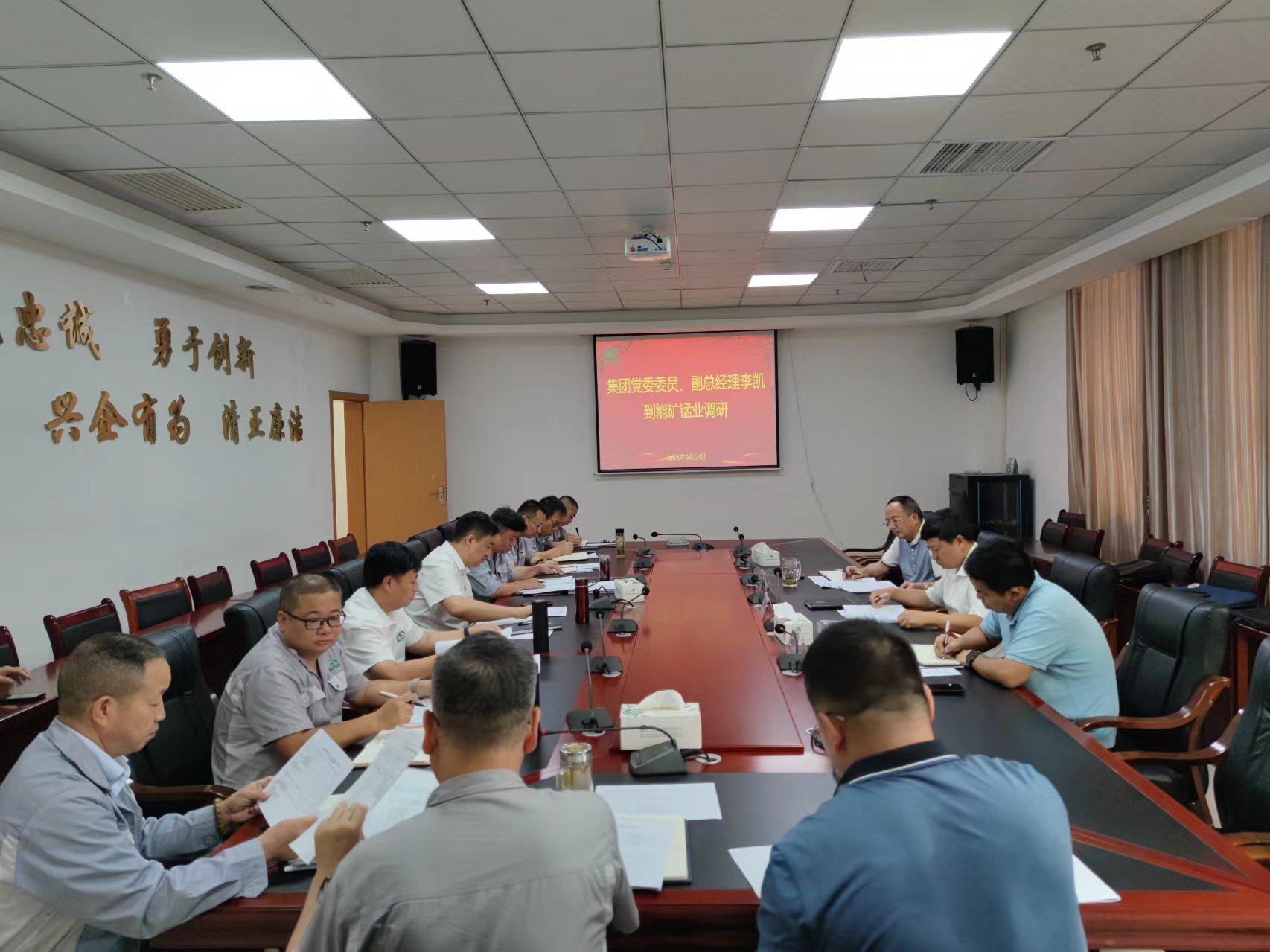本網訊 9月13日,集團黨委委員、副總經理李凱到能礦錳業調研生產經營、安全環保、“沖刺 100 天,決戰決勝全年目標任務”等情況。能礦錳業黨委書記、董事長譚曉軍及在家黨政班子成員參加調研。
