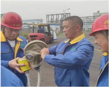 本次演練前,安環部黎明發同志首先講解了防毒面具的正確佩戴,使用過程的注意事項,危險氣體泄漏的應對方法。然后對發生火情后,各種滅火器材的使用效果,滅火過程的正確步驟,逐一進行了示范,現場員工模擬佩戴了防毒面具與滅火器使用要領,并對燃燒的火盆進行了滅火器使用實操演練。