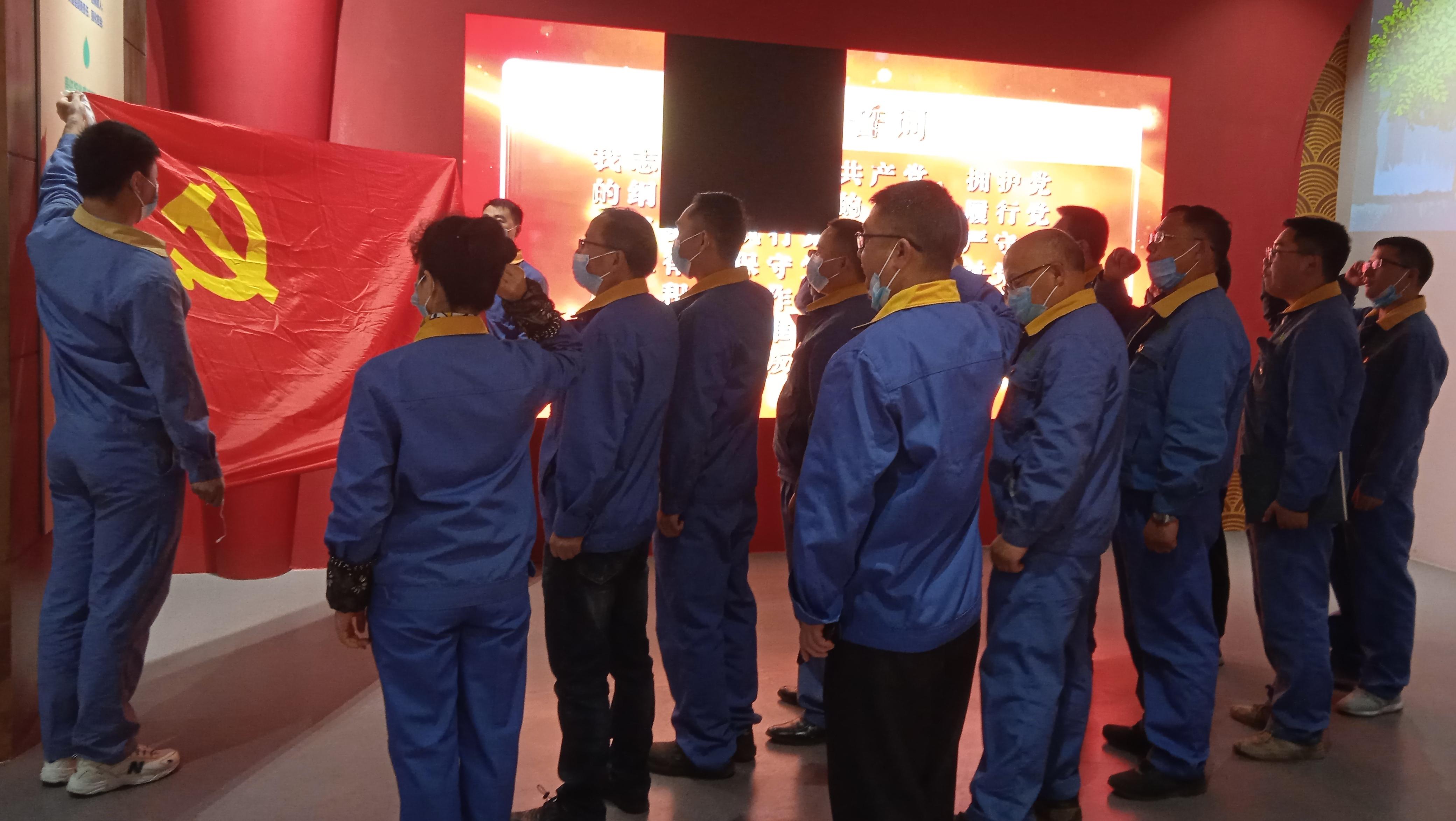 展廳還運用多媒體圖片、投影、情景再現等方式,展出銅仁市、玉屏縣貪腐案件,給參觀者帶來全方位、多角度、最直接的視覺沖擊和心理震撼。特別是大家不時駐足在“四種形態”占比圖、堅持“十慎”提升道德修養、算好人生七筆賬等展板前,讓每個黨員干部深受思想洗禮——“不忘初心、牢記使命”。在館內入黨誓詞前,全體黨員在公司黨委副書記、副總經理楊曲波的領誓下,重溫了入黨誓詞,再次感悟入黨時面對黨旗作出的莊嚴承諾,倍感責任與使命擔當。